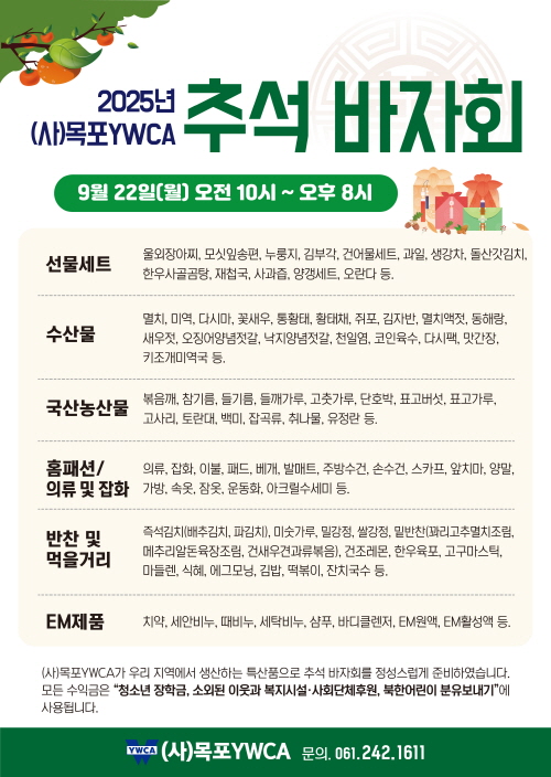 2025년 (사)목포YWCA 추석 바자회 안내
