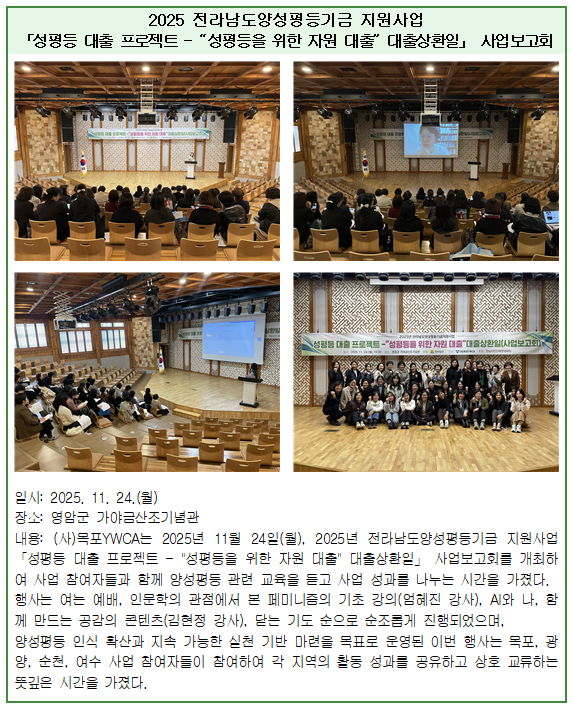 2025 전라남도양성평등기금 지원사업 「성평등 대출 프로젝트 - “성평등을 위한 자원 대출” 대출상환일」 사업보고회 진행